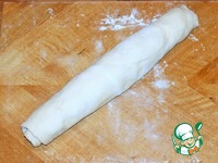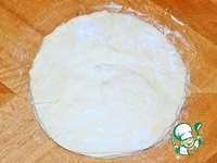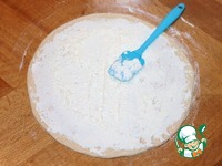 17. Третий круг не смазываем. Выкладываем круги стопкой и переносим их (в стопку) при помощи скалки для теста. Скалку предварительно припылить мукой. |