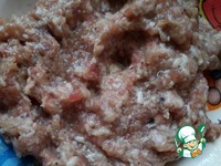 Приготовим фарш для фрикаделек, добавив в него соль, перец, измельченный лук, яйцо. |