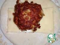 Каждую часть раскатать, сверху положить половину листика плавленного сыра, сверху фрикадельку. Защепить, сформовать. |