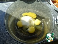 Яйца с сахаром взбить в пышную пену в течение 5 минут. |
