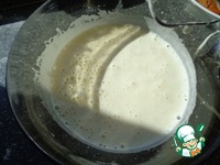 Приготовить тесто: в яичную смесь добавить разрыхлитель, негашеную соду и муку, перемешать. |