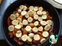 Разогреть духовку до 180 градусов. В форму для выпекания диаметром 28 см выложить хурму, предварительно перемешанную с корицей, сахаром и ванилином. Сверху разложить кружочки банана. |