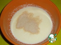 В тарелку наливаем нужное количество кефира, а остальной убираем в холодильник. Высыпаем дрожжи, размешиваем. |