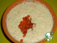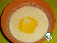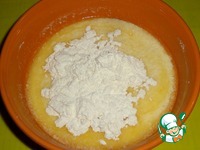 Теперь насыпаем муку, тесто должно быть, как для обычных оладьев. Оставляем тесто в тепле на 20 минут. |