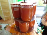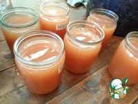 Разлить по стерилизованным банкам. Простерилизовать сок (банки 0,5 литров по 10 - 15 минут). Закатать крышками. Если есть автоклав (стерилизатор) конечно удобнее делать в нём. |