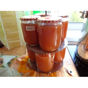 Описание: Домашний сок гарантированно натуральный, полезный. Польза для всей семьи ощутимая, плюс урожай переработан, пристроен. В сок сахар не добавлен, так как плоды очень сладкие. Сок приготовлен с использованием соковыжималки и простерилизован. Такой сок великолепен и из яблок.