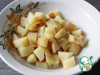 Приготовленный картофель (у меня запеченный) очистить от кожуры и нарезать на небольшие кусочки. |
