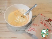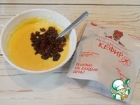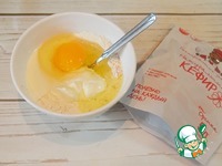 Кефира нам понадобится всего 1 ст. ложка. К остальному кефиру мы и подадим наш пирог. Смешайте растопленное масло, кефир, разрыхлитель и мед. |