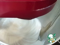 Когда сироп достиг 110 градусов, тонкой струйкой по стенке наливаем в чашу миксера. Скорость при этом немного убавляем, чтобы сироп не разбрызгался. |