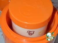 - контейнер плотно закрыть крышкой и хорошо встряхнуть - в термос-йогуртницу налить кипятка до специальной отметки и поместить в него контейнер с молочной смесью |