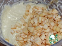 Добавить в тесто яблоки, нарезанные кубиком, перемешать. |