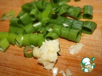 Мелко натереть или порезать чеснок. Лук так же мелко порезать. |