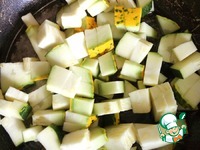 Кабачок я нарезала кубиком, посолила по вкусу, добавила итальянские травы и сначала обжарила на растительном масле до мягкости. |