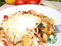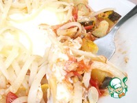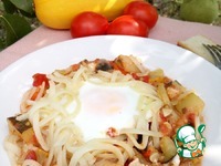 Получается разнообразный, сытный и вкусный завтрак, либо обед, либо ужин... Тушеные овощи, лапша и яйца, очень гармонично соединились в этом простом рецепте. |