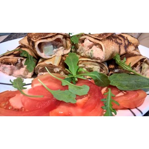 Описание: Этот рецепт я взял из передачи шефа Владимира Павлова "Делай как я". Правда я немножко изменил рецепт, но получилось довольно неплохо, по крайней мере моя семья одобрила. Вместо лаваша я сделал блинчики. Несмотря на наличие некоторого количества майонеза, блюдо получилось довольно легкое и полезное. Авокадо и оливковое масло способствуют снижению сахара и холестерина (что важно для тех, кто вынужден это контролировать). Сочетание довольно кислого ягодного вкуса с маслянистым вкусом авокадо и свежим вкусом огурцов и помидоров дополняет сытность блинчиков и балансирует некоторую жирность. Это блюдо можно подавать как закуску или как завтрак