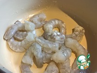 Берем сырые креветки. Очищаем от панцирей и удаляем пищевод, надрезав их по спинке |