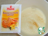 Сначала готовим тесто для коржа. Взбиваем куриные яйца миксером. Затем добавляем ванильный и обычный сахар. Взбиваем массу до однородности. |