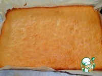 Противень застилаем бумагой, смазываем маслом. Выливаем тесто. Выпекаем корж в духовке около 20 минут. Остужаем корж и убираем бумагу. |