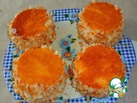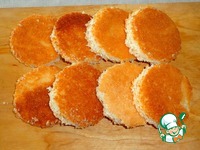 Из коржа вырезаем кружочки стаканом 200 мл. А из обрезков делаем крошку. |