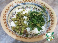 А пока мелко рубим зелень и оливки и перемешиваем их с творогом. Если у Вас творог сухой и крупнокрупинчатый, то советую добавить сливок или некислого йогурта, чтоб получить нужную консистенцию. |