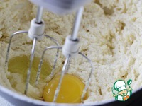 Не прекращая взбивать, ввести по одному яйца и желток. |