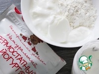 Добавить оставшийся йогурт и муку, смешанную с разрыхлителем и содой, перемешать. |