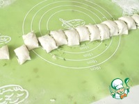 Свернуть в рулет и нарезать на кусочки, толщиной не более 2 см. |