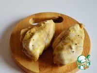 Куриную грудку замариновать любыми специями и запечь до готовности. Я запекала в сотейнике под крышкой. |