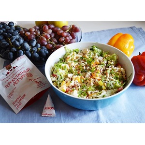 Описание: Легкий салат из куриной грудки с пикантной заправкой из йогурта, приготовленного при помощи бактериальной заправки ТМ OURSSON "Термостатный йогурт"