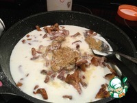 Влейте к лисичкам жидкость выделившуюся в начале жарения, когда она загустеет... |