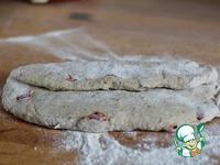 Формуем заготовку. Расплющим на хорошо посыпанной мукой поверхности. |