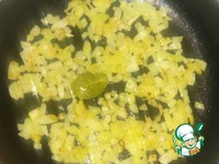 Приготовим начинку. На сковороде растопим сливочное масло. Добавить нарезанный лук и лавровый лист. Обжарить до золотистого цвета лук. Снять с огня, убрать лавровый лист. |