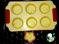 Распределить лук по формочкам, залить заливкой и поставить в духовку примерно на 25 минут до уплотнения и зарумянивания верха. |