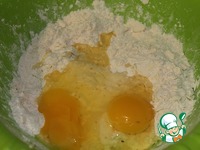 Затем добавить сахар и яйца. Если тесто плохо собирается в комок, добавить воды, но не всю сразу, а постепенно, по 1 ложке. |