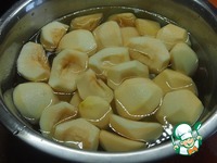 Тем временем очистить яблоки, вырезать серединку и сложить их в миску с холодной водой и соком половины лимона, чтобы они не потемнели в ожидании подъема теста. |