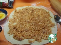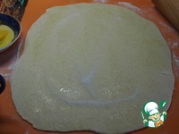 Одну половину теста раскатать в пласт толщиной около 1 см. С помощью кисточки смазать растопленным маслом и посыпать сахаром. |