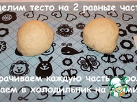 Тесто делим на две равные части. Каждую часть теста заворачиваем в фольгу и убираем в холодильник на 30 минут. |