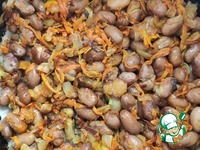 Оставшую луковицу нарезать на кубики, натереть морковь на крупной тёрке и спассеровать на растительном масле. Сюда добавить оставшуюся фасоль. Выложить на дно мультиварки полученную смесь. |