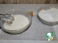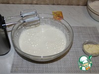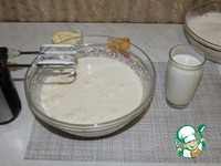 В муку добавляем разрыхлитель и соль. Хорошо перемешиваем. Постепенно добавляем муку и взбиваем на малых оборотах. |