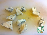 Нарезаем голубой сыр произвольными кусочками и добавляем в сотейник. |