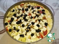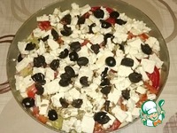 Сверху выложить мелко нарезанную брынзу и порезанные оливки. Сбрызнуть оливковым маслом. Запекать в предварительно разогретой до 180С духовке 35 минут. |