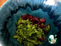 Нарезаем петрушку средне и добавляем в миску со свеклой |