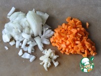 Берём лук, морковь, чеснок; чистим, режем маленькими кубиками. |