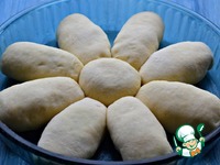 Выложить заготовки в форму для выпечки (d 24 см) в виде цветка (рулеты - лепестки, круглая булочка - серединка) При необходимости смазать форму растительным или сливочным маслом. |