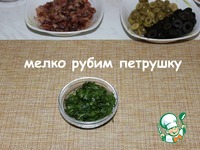 Добавляем петрушку, бекон и сыр. Хорошо все перемешиваем. |