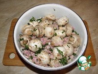 Добавляем в эту смесь помытые шампиньоны, перемешиваем, солим, перчим по вкусу |