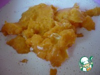 Тыквенное пюре добавить в миску с творожной смесью и перемешать. |