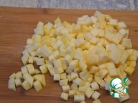 Репу, если решите ее использовать, очистить и нарезать маленькими кубиками. |
