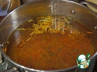 Заварить отлитым ранее бульоном. Заправить щи. В конце добавить измельченный чеснок. Дать супу настояться. |