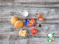Добавьте в сковороду сливочного масла и пожарьте 2 яичницы-глазуньи (хорошо, если у вас есть силиконовое или металлическое кольцо – если установить его на сковороду, положить масло внутрь и аккуратно влить туда яйцо, то яичница получается идеально круглой и красиво ложится на булочку). Не зажаривайте сильно – яичница еще прогреется в духовке. Посолите и поперчите. |